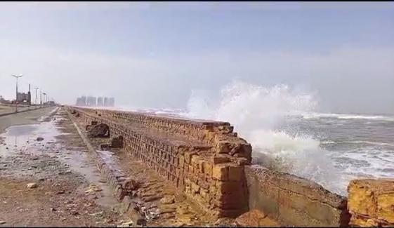 جنگ کو موصول ہونے والی ویڈیو میں آج صبح کے مناظر دیکھے جاسکتے ہیں کہ سمندر کی لہریں اس قدر بلند ہو گئی ہیں کہ یہ سڑک کنارے قائم منڈیر (دیوار) تک پہنچ کر مسلسل ٹکرا رہی ہیں۔