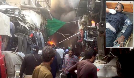 کراچی: شیر شاہ کباڑی بازار میں 20 دکانیں جل گئیں، فائر فائٹر زخمی