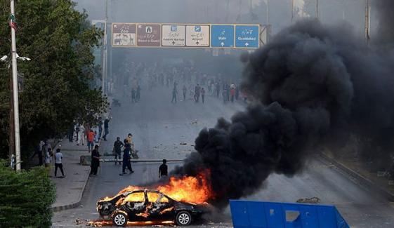 منتظم جج کے روبرو پولیس نے شاہراہ فیصل پر 9 مئی کو ہونے والے جلاؤ گھیراؤ اور رینجرز کی چوکی جلانے کا عبوری چالان جمع کرادیا۔
