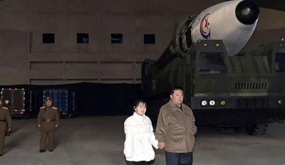 غیرملکی میڈیا کے مطابق گزشتہ روز کم جونگ ان نے بیٹی کے ساتھ جوہری ہتھیاروں سے لیس ملک کے سب سے بڑے بیلسٹک میزائل کے لانچ کا معائنہ کیا۔