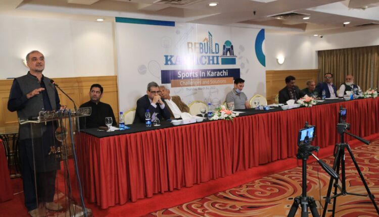 حافظ نعیم الرحمن کی زیر صدارت مقامی ہوٹل میں ”ری بلڈ کراچی“ کے سلسلے میں ”کراچی میں شعبہ کھیل کو درپیش مسائل اور ان کے حل“کے حوالے سے معروف قومی کھلاڑیوں کے ہمراہ پینل ڈسکشن کاانعقاد کیا گیا جس میں سابق ہاکی اولمپیئن اصلاح الدین، سابق قومی کرکٹر صادق محمد، قومی کرکٹ کے سابق کپتان یونس خان،اسپورٹس سے وابستہ سینئر صحافی یحیٰ حسینی، کراچی ٹینس ایسوسی ایشنز کے صدر خالدرحمانی،معروف باکسر علی اکبر شاہ قادری،مبشر مختار، ڈاکٹر ثاقب انصاری نے اپنے خیالات کا ااظہار کیا۔