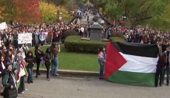 کینیڈا کے شہر مونٹریال میں یونیورسٹی کے طلباء نے فلسطین کے حق میں بھرپور مظاہرہ کیا۔
