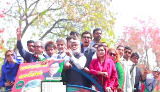 اس موقع پر پی ٹی آئی رہنما مسرت چیمہ نے کہا کہ آج عوام جمہوریت کے لیے گھر سے باہر نکلیں۔